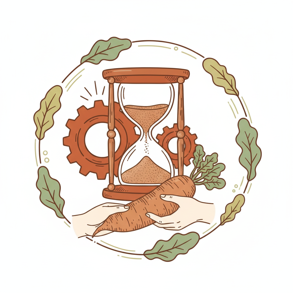 陽光下的蘿蔔葉與泥土,象徵「天然純粹」